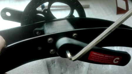 Hold the crankarm and screw the 8mm bolt (images 2,3 & 4). Please use a threadlocker to secure it in place. And by all means, try to tighten it as much as possible. A good idea would be to use an impact driver to ensure that the bolt is tightened well. Now put back the black nut (cap), and secure it with a 10mm key (image 5). There's no need to overtighten as with the bolt. Just aim for a firm fit.